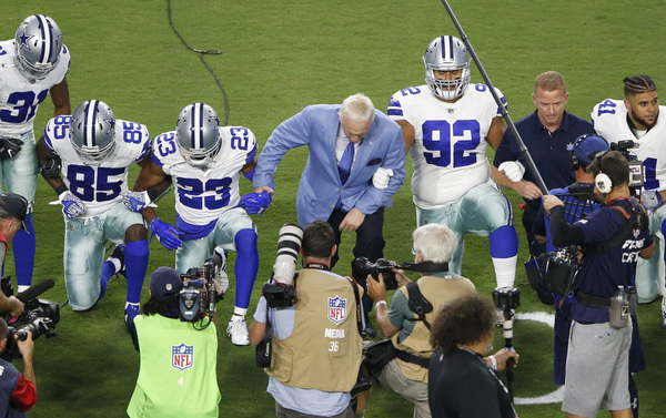 But the Cowboys linking of arms and taking a knee with owner Jerry Jones right before the national anthem in response to divisive and controversial remarks from President Donald Trump regarding the NFL and ongoing anthem protests was the best of both worlds.