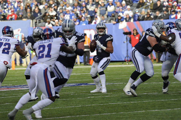Prescott had four consecutive games for less than 200 yards and had five interceptions. He showed signs of life with two touchdowns in the victory against the Redskins, but still passed for a career-low 102 yards.