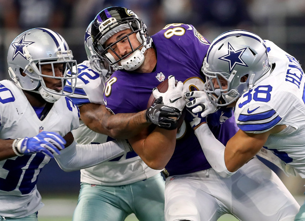 He completed six of seven passes to set up a 30-yard field from Dan Bailey.