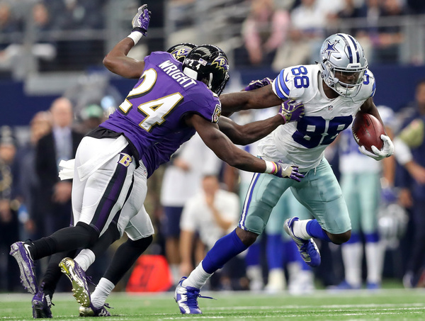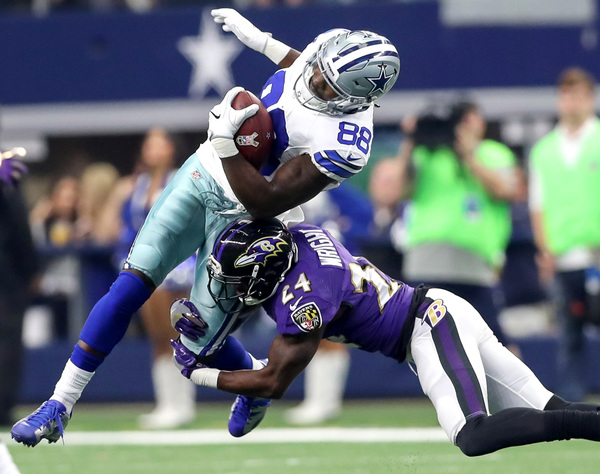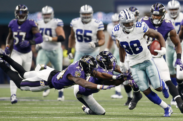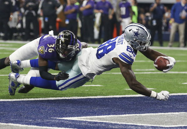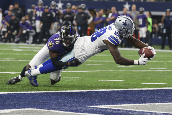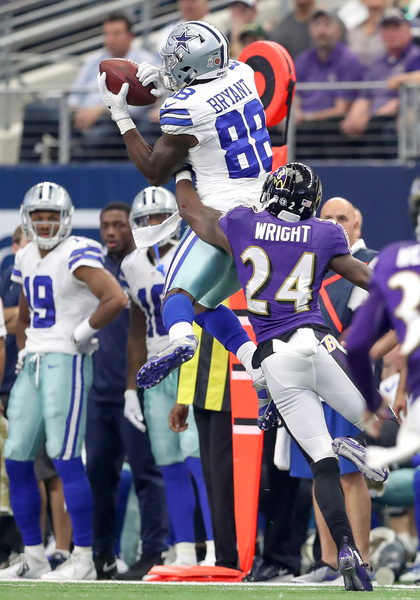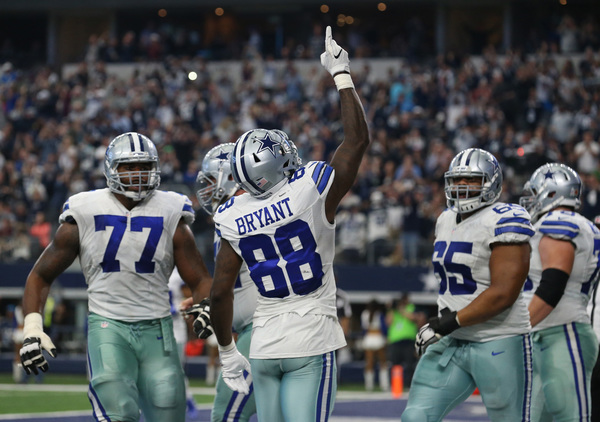 Receiver Dez Bryant caught touchdown passes of 4 and 13 yard to put the Cowboys up 24-10.