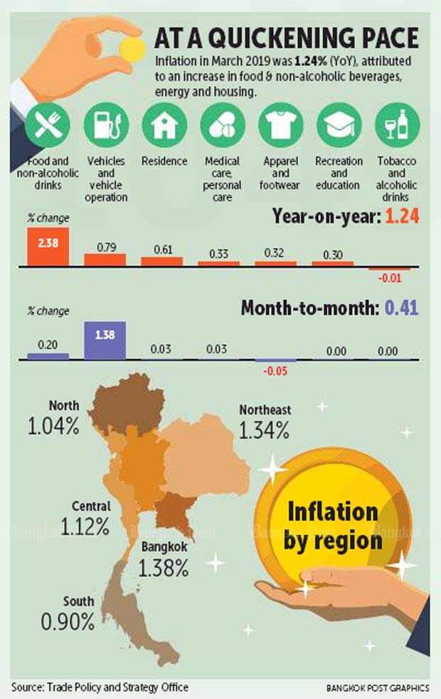 "Prices are expected to stay higher in the second quarter, averaging 1.01% for the period driven by oil prices, the drought and higher demand from the Songkran festival," she said. "The beginning of another school year will also result in higher spending."