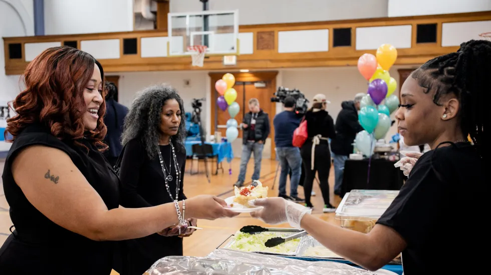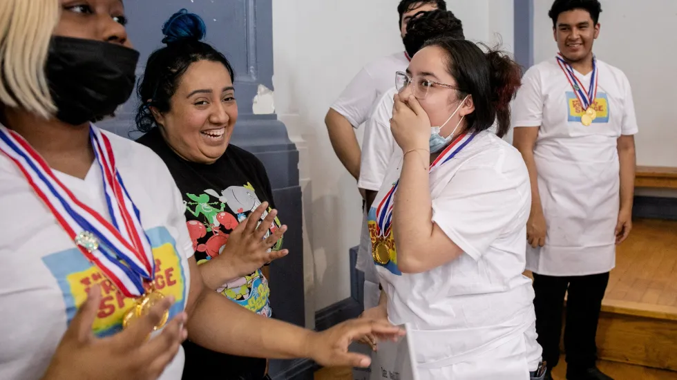 Many students on Friday shared stories similar to Josue’s. Vaughn’s Gustavo Patino, 22, became interested in culinary after watching his mother cook for the family. Tatianna Bowlton, 17, from Clemente, used to follow her grandfather around in the kitchen. And Antonio Anderson, 17, who attends Manley, said his mom used to ask for his help when he was little.