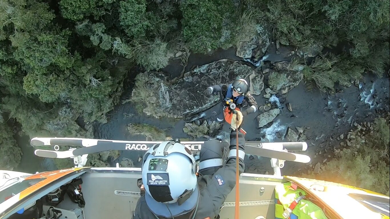 "After searching for a while, I realised he was actually on the other side of the river and that the best chance of me getting to him was to be winched back out and dropped closer to his exact location which was about 100 metres away."