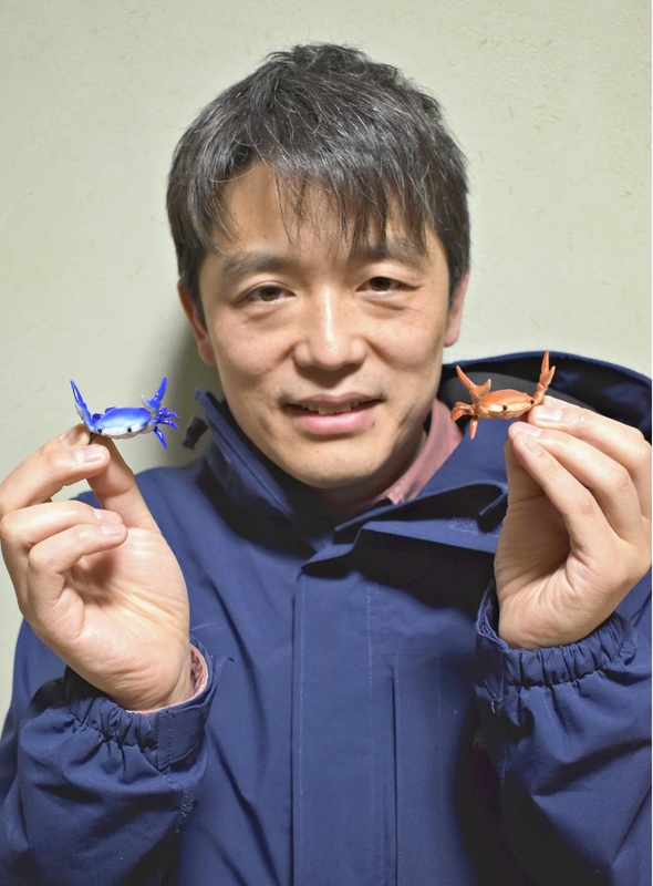 They are actually crab-shaped pen holders produced by Minoru Tanaka, 45, a formative artist in Tsuru, Yamanashi Prefecture. The products have been highly popular ever since they caused a buzz on social media. Sales of the pen holders have also started at Michi-no-Eki (roadside rest area) Tsuru in the city's Ohara area.