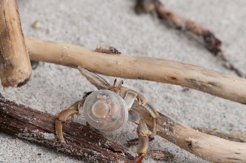 Look, we're all into weird stuff that we only search for when using Incognito mode. That's fine. We all just agree not to talk about it. But hermit crabs do not have this luxury. Instead of quietly searching for the things that excite them in the privacy of their own shell, they've been lured out into the open by plastic waste, which apparently is leaking a plastic additive that has a pheromone-like effect on the crustaceans that gets them going. Scientists at the University of Hull in England, the voyeurs that they are, have tracked this behavior and published a paper in the journal Marine Pollution Bulletin about it, kink-shaming the poor crabs.