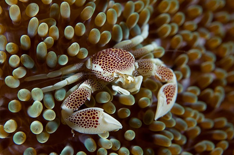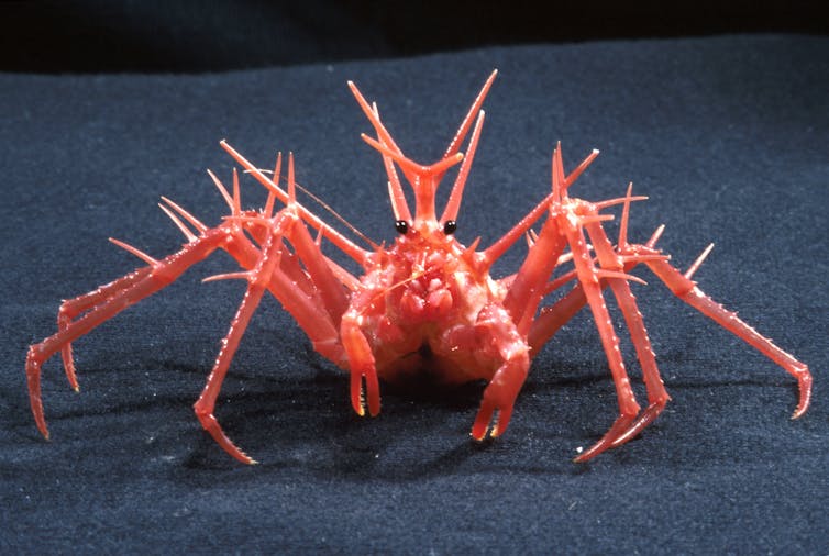 Crabs belong to a group of crustaceans called decapods – literally “ten footed”, since they have five pairs of walking legs. Some decapods, like lobsters and shrimp, have a thick, muscular abdomen, which is the bulk of the animal that we eat. With a quick flick of their abdomen lobsters can shoot off backwards and escape predators.