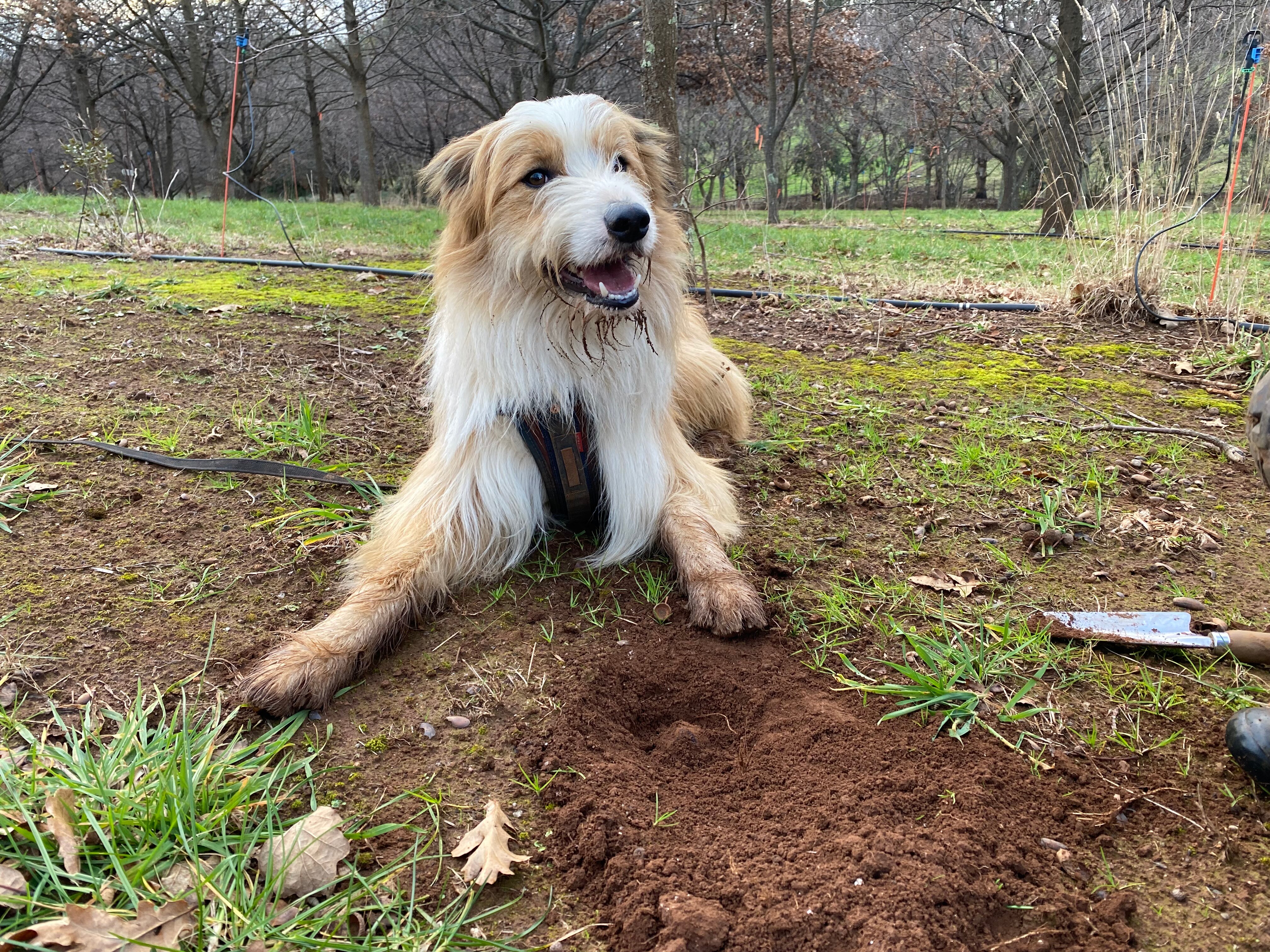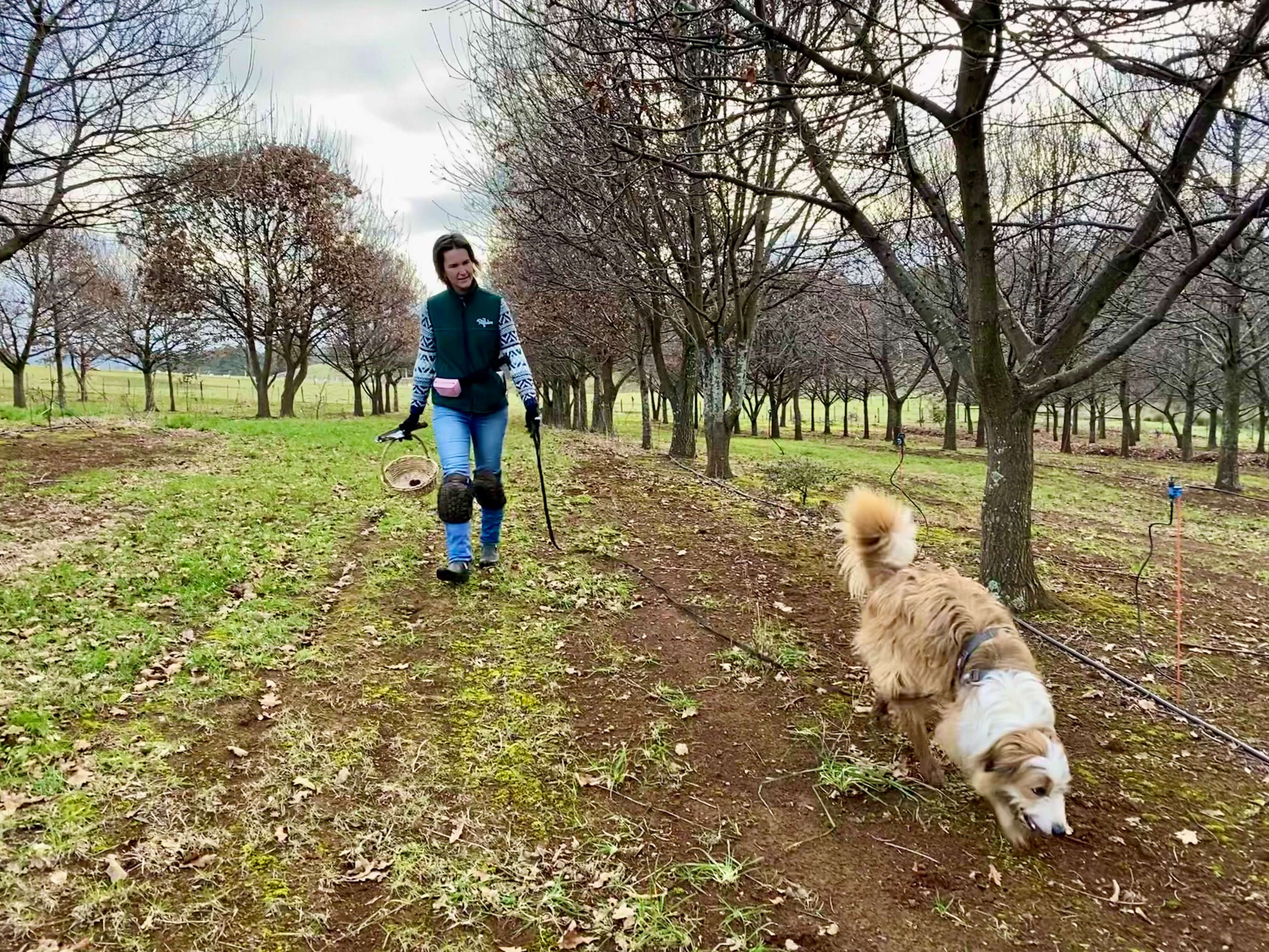 It has been a steep learning curve but they are reaping the rewards of a good season with a little help from their three-year-old Tasmanian Smithfield dog Cody, who sniffs them out.
