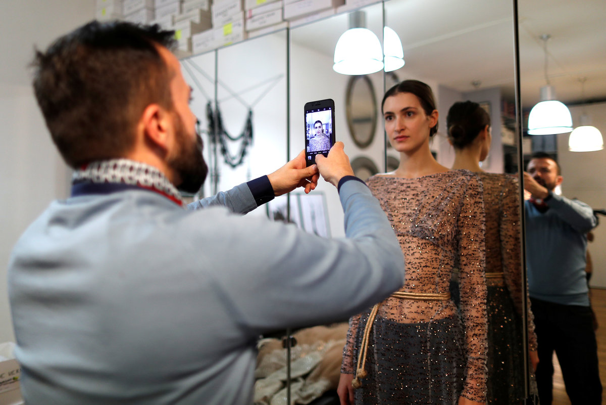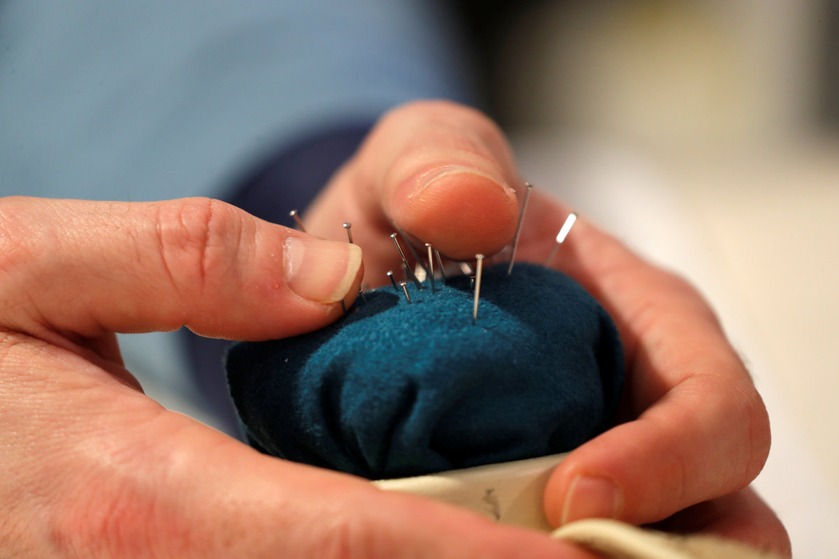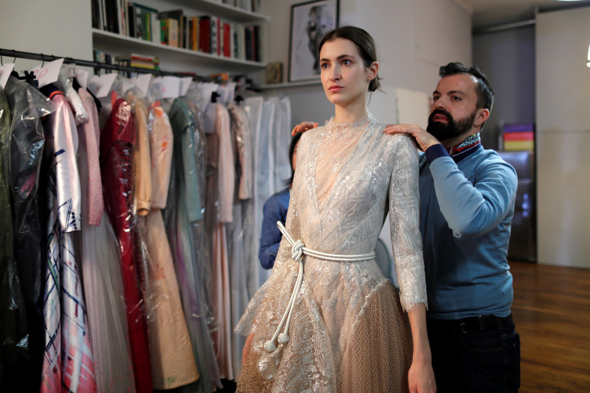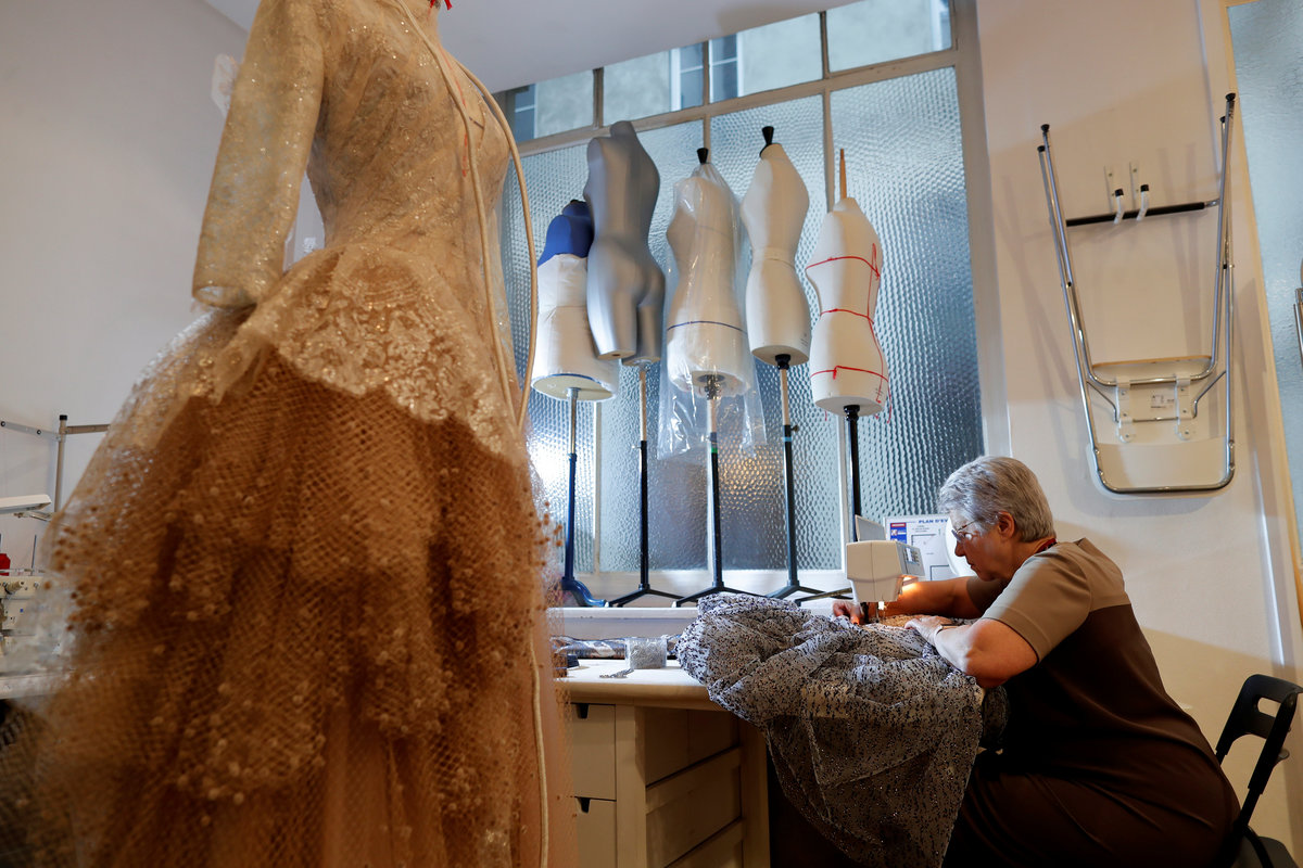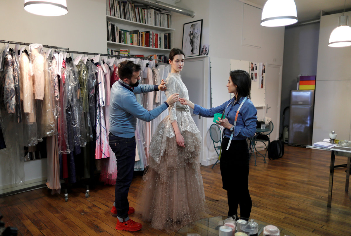 French designer Julien Fournie plays with needles during an interview with Reuters ahead of his Spring-Summer 2018 Haute Couture fashion show presentation in Paris, France, January 15, 2018. Picture taken January 15, 2018. REUTERS/Charles PlatiauFrench designer Julien Fournie (L) takes pictures of model Daphne (R) during a fitting at his workshop ahead of his Spring-Summer 2018 Haute Couture fashion show presentation in Paris, France, January 15, 2018. Picture taken January 15, 2018. REUTERS/Charles PlatiauFrench designer Julien Fournie (R) adjusts a creation on model Greta (C) during a fitting at his workshop ahead of his Spring-Summer 2018 Haute Couture fashion show presentation in Paris, France, January 15, 2018. Picture taken January 15, 2018. REUTERS/Charles PlatiauMadame Jacqueline, head seamstress, works on a wedding dress at the Maison Julien Fournie workshop ahead of his Spring-Summer 2018 Haute Couture fashion show presentation in Paris, France, January 15, 2018. Picture taken January 15, 2018. REUTERS/Charles PlatiauFrench designer Julien Fournie (L) adjusts a creation on model Daphne (R) during a fitting at his workshop ahead of his Spring-Summer 2018 Haute Couture fashion show presentation in Paris, France, January 15, 2018. Picture taken January 15, 2018. REUTERS/Charles PlatiauFrench designer Julien Fournie (L) takes pictures of model Greta (R) during a fitting at his workshop ahead of his Spring-Summer 2018 Haute Couture fashion show presentation in Paris, France, January 15, 2018. Picture taken January 15, 2018. REUTERS/Charles PlatiauMadame Jacqueline (L), head seamstress, works at the Maison Julien Fournie workshop ahead of his Spring-Summer 2018 Haute Couture fashion show presentation in Paris, France, January 15, 2018. Picture taken January 15, 2018. REUTERS/Charles PlatiauMadame Jacqueline, head seamstress, works at the Maison Julien Fournie workshop ahead of his Spring-Summer 2018 Haute Couture fashion show presentation in Paris, France, January 15, 2018. Picture taken January 15, 2018. REUTERS/Charles PlatiauSeamstresses work at the Maison Julien Fournie workshop ahead of his Spring-Summer 2018 Haute Couture fashion show presentation in Paris, France, January 15, 2018. Picture taken January 15, 2018. REUTERS/Charles Platiau