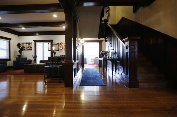 In the front hallway, you can feel the home's heritage as a dark walnut grand staircase leads to the second-floor bedrooms.