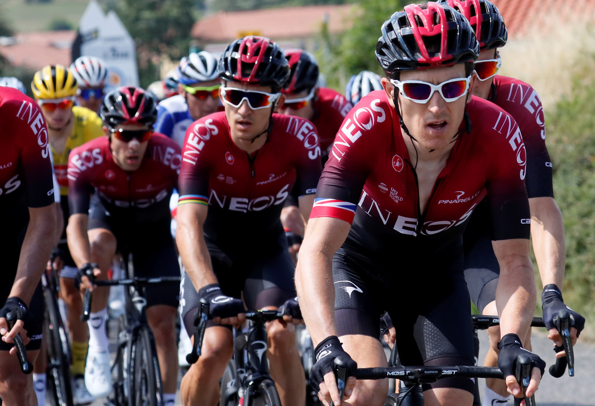 The pile-up was caused by EF-Education First's Michael Woods crashing in front of the Ineos riders, who escaped unhurt although Gianni Moscon's bike was snapped in two.