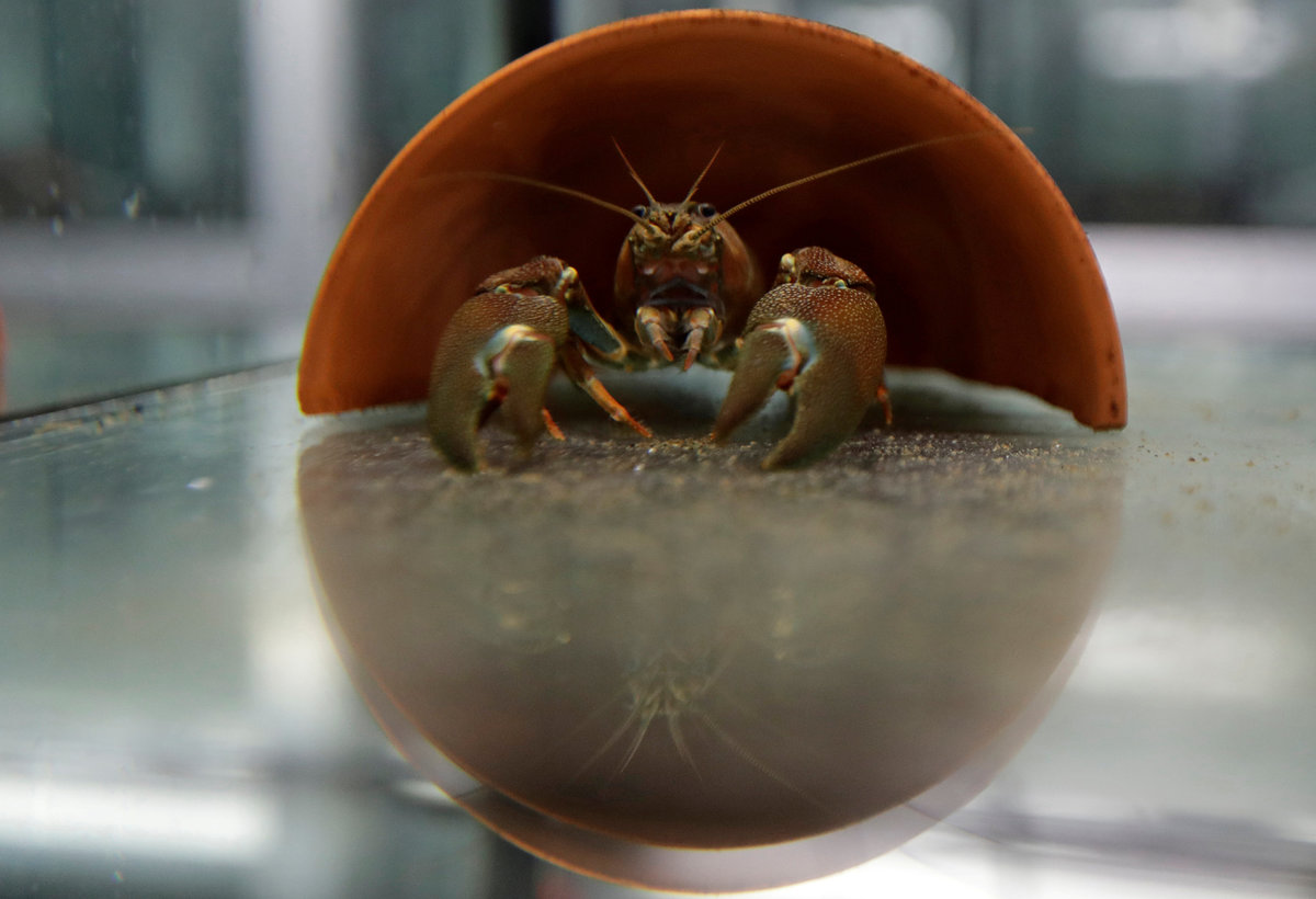 A crayfish sits inside a fish tank in a laboratory of Faculty of Fisheries and Protection of Waters in Vodnany, Czech Republic, September 26, 2017. Picture taken September 26, 2017. REUTERS/David W Cerny TPX IMAGES OF THE DAY