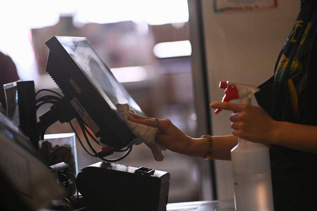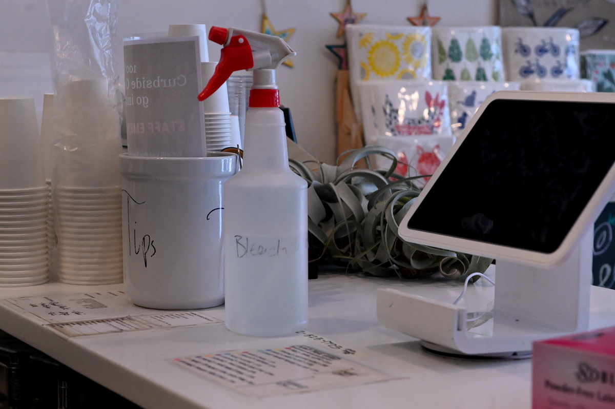 The notice behind the cash register is starker: "Treat your visit as if it's risking lives."