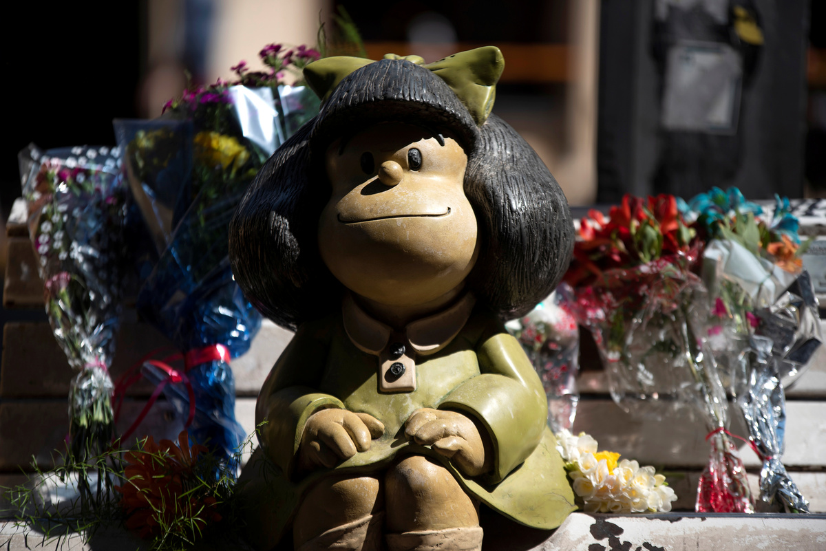 Quino created Mafalda, an Argentine girl of about five or six with bulging black hair and strong political views. The cartoon was eventually published in 27 languages.