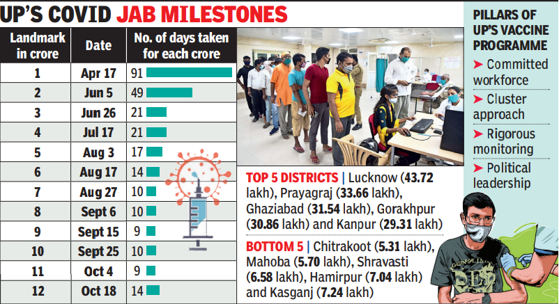 LUCKNOW: Stating that the 100 crore vaccination doses mark was surely a great reason to celebrate, chief minister Yogi Adityanath on Thursday said that achieving the milestone couldn't have been possible without two crucial elements.