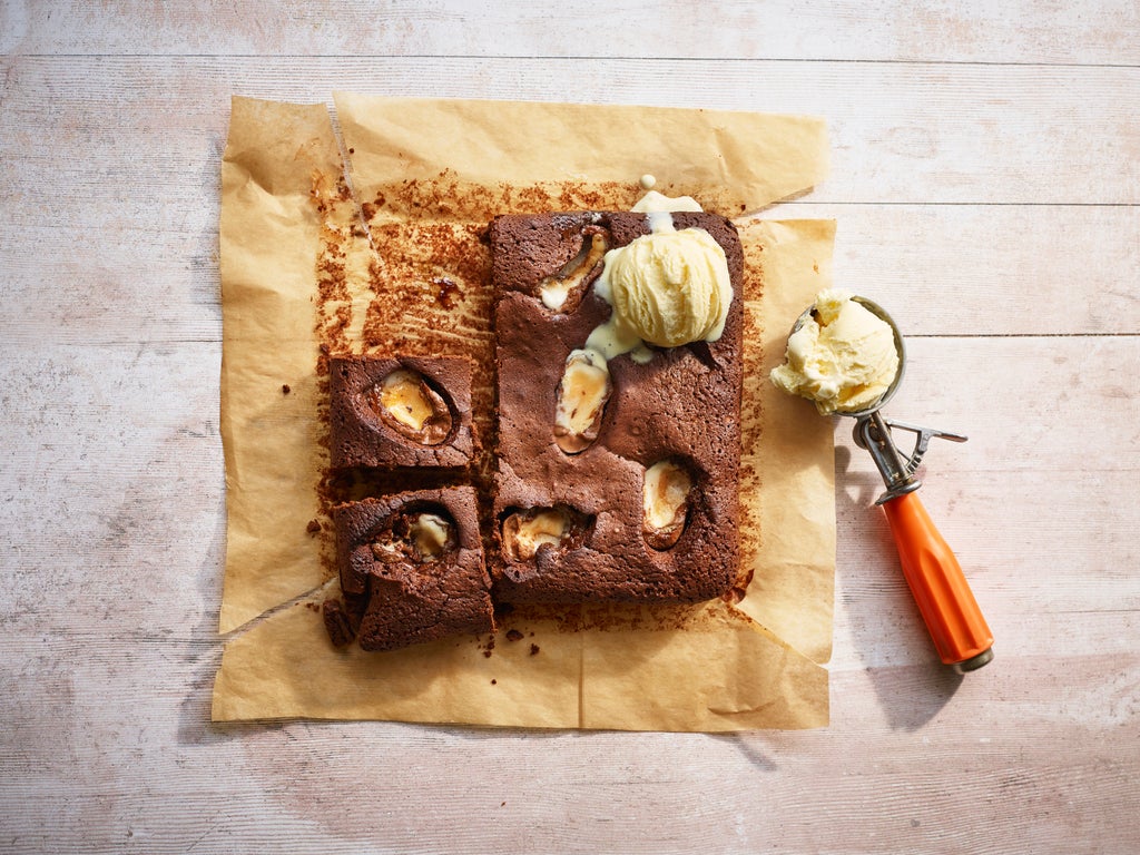 “All the ingredients except the fresh orange zest are from the store cupboard,” says Phil Vickery. “Just remember to allow the brownie to cool a little after taking out of the oven – or, better yet, chill in the fridge – or it will be too soft to cut.”