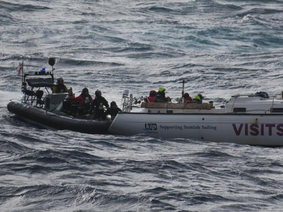 Its crew of 13 Britons and one American waited 20 hours for HMS Dragon to reach them as the Type 45 destroyer was diverted 500 miles from a routine deployment.