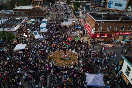 The intersection at 38th Street and Chicago Avenue has been closed to traffic and became a primary gathering place for those mourning Floyd's death.