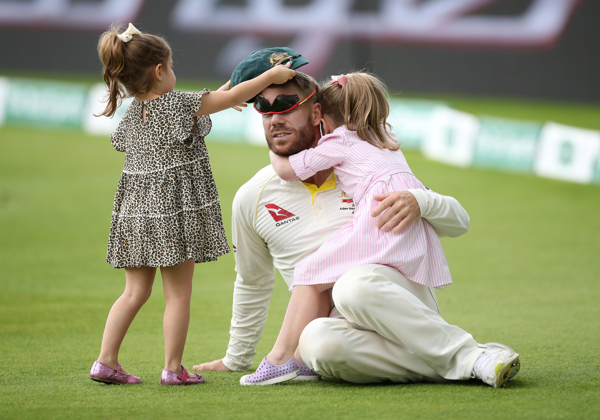 Cricket - Ashes 2019 - First Test - England v Australia - Edgbaston, Birmingham, Britain - August 5, 2019 Australia's David Warner celebrates with family after winning the first test Action Images via Reuters/Carl Recine
