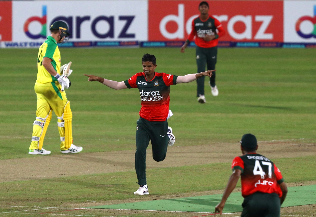 Mustafizur Rahman led an extraordinary performance from the hosts' bowling attack and conceded only nine runs in his four overs while Shoriful Islam (2-29) took the crucial wicket of Australia's top-scorer Mitchell Marsh (51) in the 18th over.