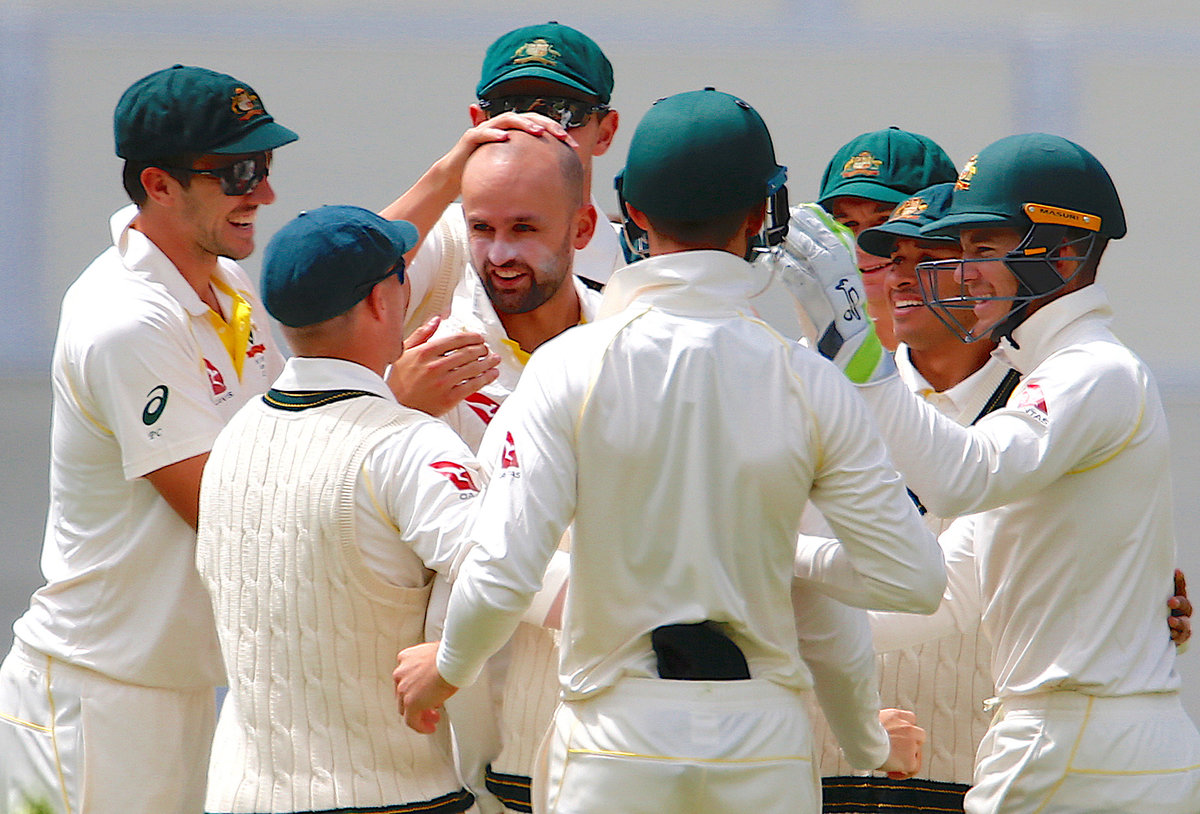 Nightwatchman Nathan Lyon survived to the end of the day and will resume with Peter Handscomb. Both were three not out.