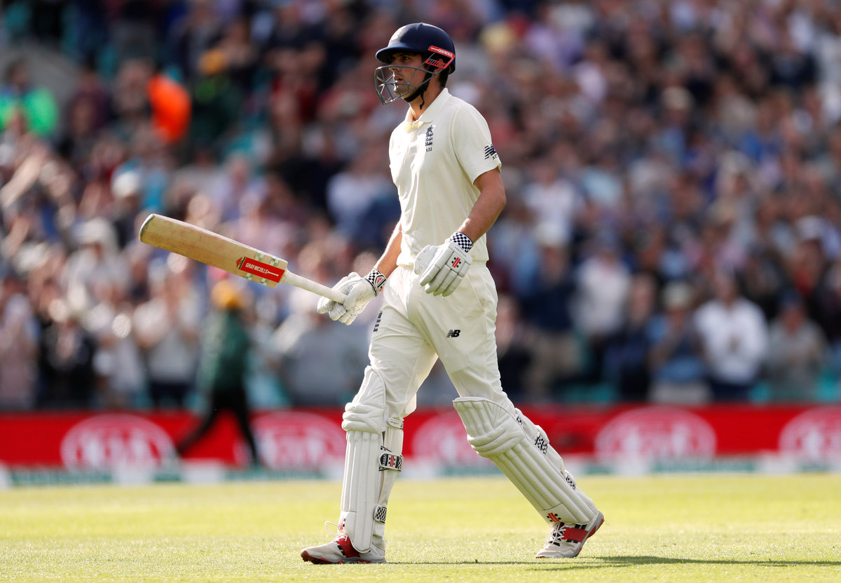 Cricket - England v India - Fifth Test - Kia Oval, London, Britain - September 7, 2018 England's Alastair Cook walks off the pitch after losing his wicket Action Images via Reuters/Paul ChildsCricket - England v India - Fifth Test - Kia Oval, London, Britain - September 7, 2018 England's Alastair Cook reacts after being bowled out by India's Jasprit Bumrah (not pictured) Action Images via Reuters/Paul Childs