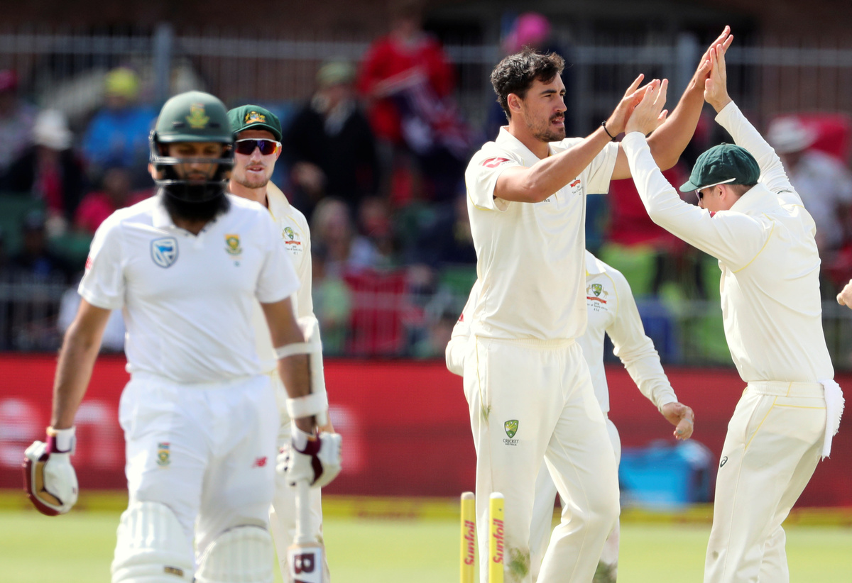 Mitchell Marsh (2-26), who had been ill on day one, looked full of energy as he got two balls to tail in late and remove home captain Faf du Plessis (9) and Theunis de Bruyn (1) leg before wicket.
