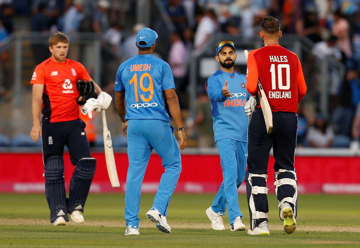 Cricket - England v India - Second International T20 - The SSE SWALEC, Cardiff, Britain - July 6, 2018 India's Virat Kohli shakes hands with England's Alex Hales after the match Action Images via Reuters/Ed Sykes