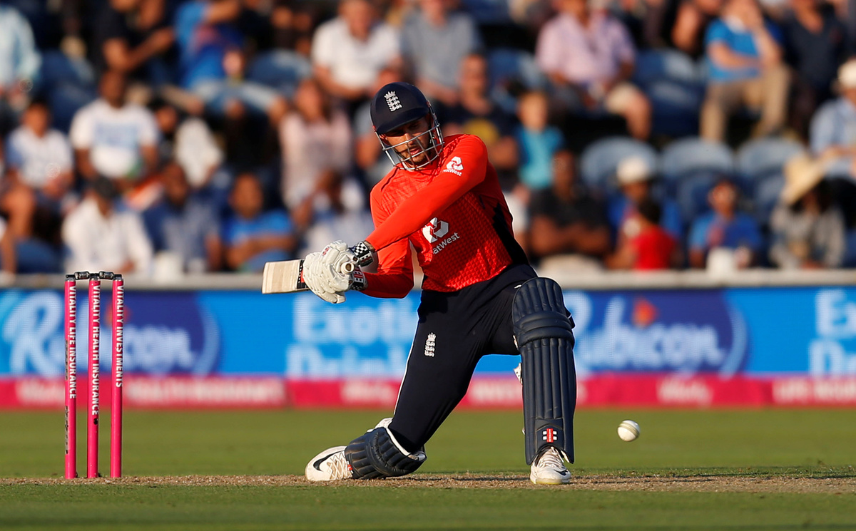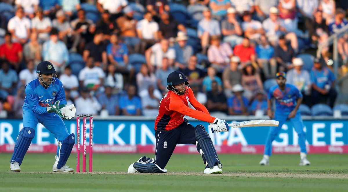 Cricket - England v India - Second International T20 - The SSE SWALEC, Cardiff, Britain - July 6, 2018 England's Alex Hales hits a four Action Images via Reuters/Ed SykesCricket - England v India - Second International T20 - The SSE SWALEC, Cardiff, Britain - July 6, 2018 India's Kuldeep Yadav in action Action Images via Reuters/Ed SykesCricket - England v India - Second International T20 - The SSE SWALEC, Cardiff, Britain - July 6, 2018 England's Eoin Morgan in action as India's MS Dhoni looks on Action Images via Reuters/Ed SykesCricket - England v India - Second International T20 - The SSE SWALEC, Cardiff, Britain - July 6, 2018 England's Alex Hales in action Action Images via Reuters/Ed SykesCricket - England v India - Second International T20 - The SSE SWALEC, Cardiff, Britain - July 6, 2018 England's Eoin Morgan walks off the pitch after losing his wicket Action Images via Reuters/Ed Sykes