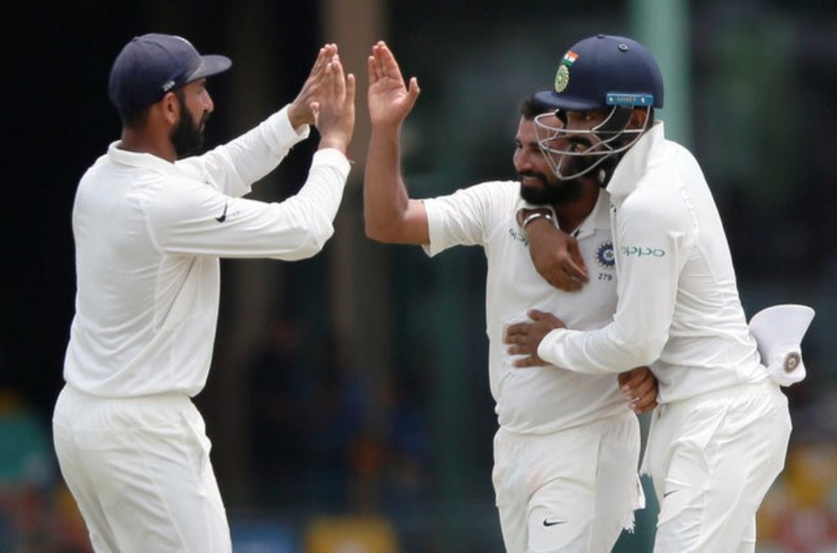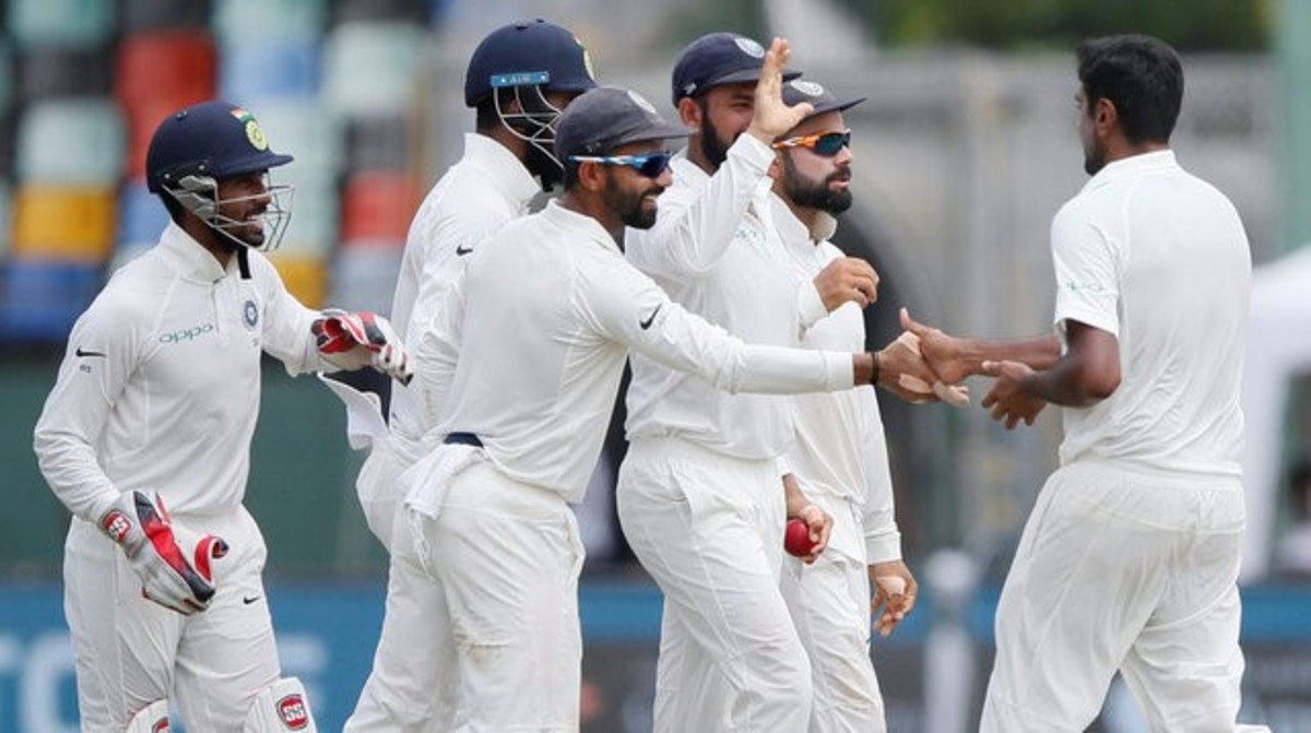 India captain Virat Kohli, who led his team to a crushing 304-run win in the first of the three tests, was rewarded for his superb field placement when avid sweeper Dinesh Chandimal sent a Raviindra Jadeja delivery straight to Hardik Pandya at square leg. Chandimal made 10.