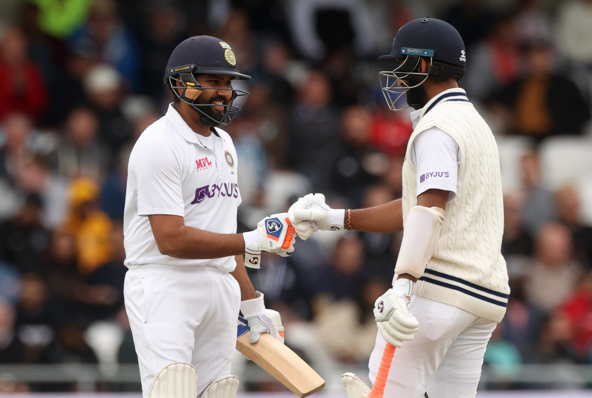 Rohit was content nudging the ball around but occasionally counter-attacked, like when he guided a rising Ollie Robinson delivery over the slip cordon for six.