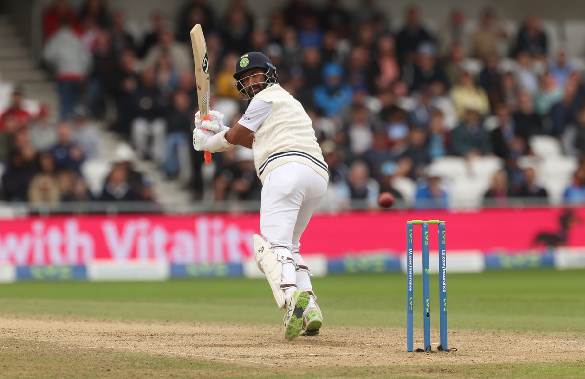 His urgency to score was best illustrated when Pujara, famed for his conventional batting, arched back to a rising Robinson delivery to play an audacious ramp shot over the slip fielders for a boundary.