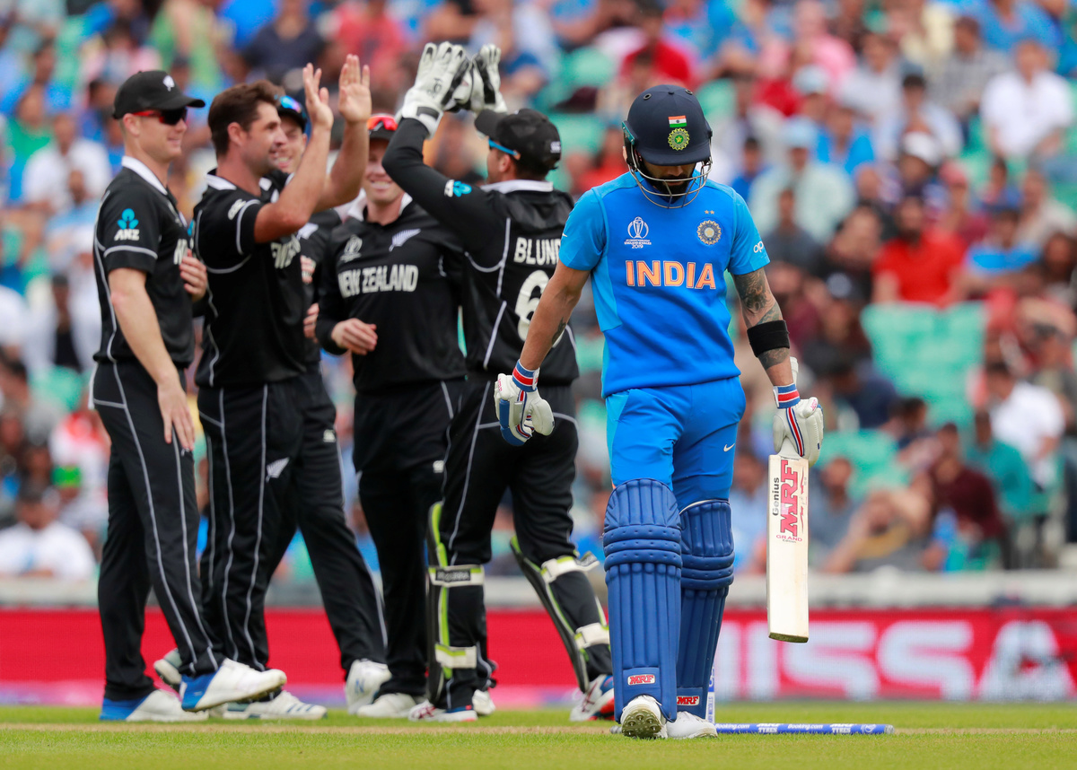 Kohli also fell quickly, castled by Colin de Grandhomme to leave India floundering at 39-4. Ravindra Jadeja's 54 off 50 balls gave India a respectable total before he was caught sharply at backward point by Martin Guptill.