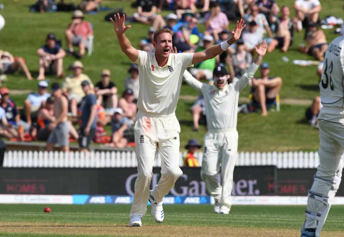 Cricket - New Zealand v England - Second Test - Seddon Park, Hamilton, New Zealand - November 30, 2019 England's Stuart Broad appeals for the wicket of New Zealand's Mitchell Santner REUTERS/Ross Setford