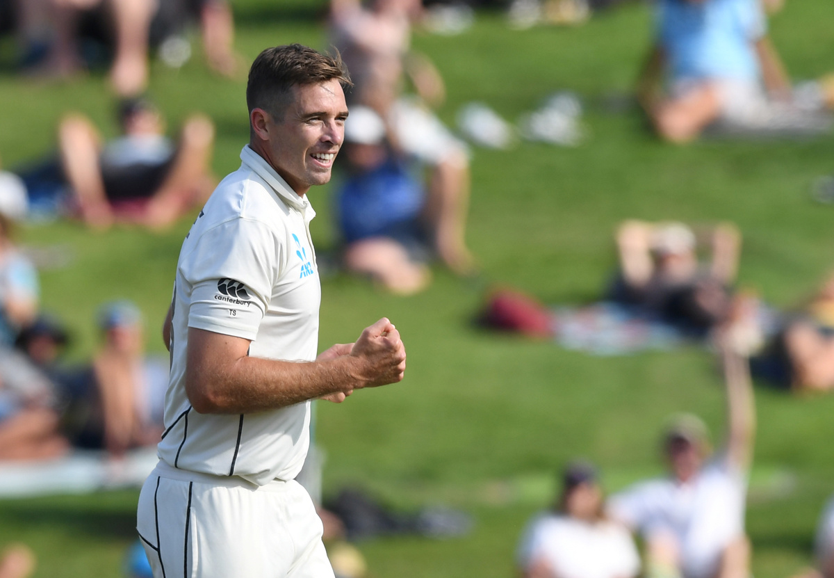 Cricket - New Zealand v England - Second Test - Seddon Park, Hamilton, New Zealand - November 30, 2019 New Zealand's Tim Southee celebrates during the match REUTERS/Ross Setford