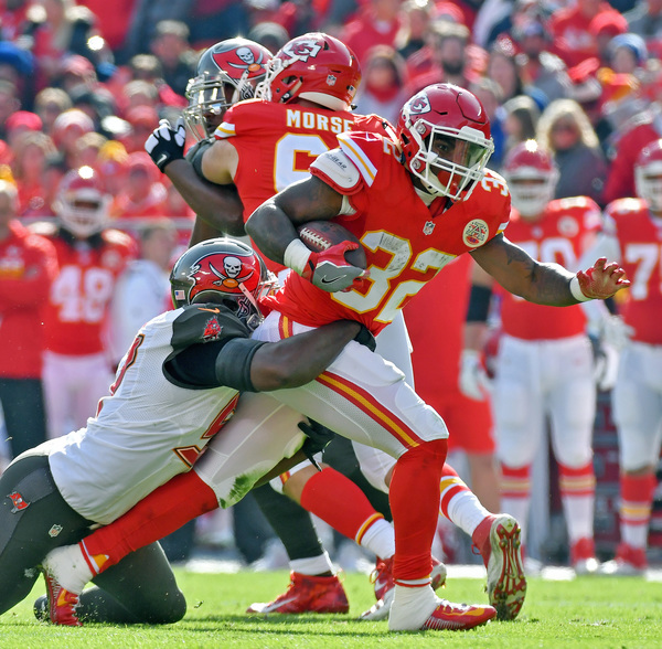 The Bucs did most of their damage through the air in the first half, compiling 203 of their 236 first-half yards via the arm of Winston, who finished the game 24 of 39 for 339 yards. In the second half, they began to pair their potent short passing game with some power runs, testing the physicality and gap discipline of the Chiefs' defensive front.