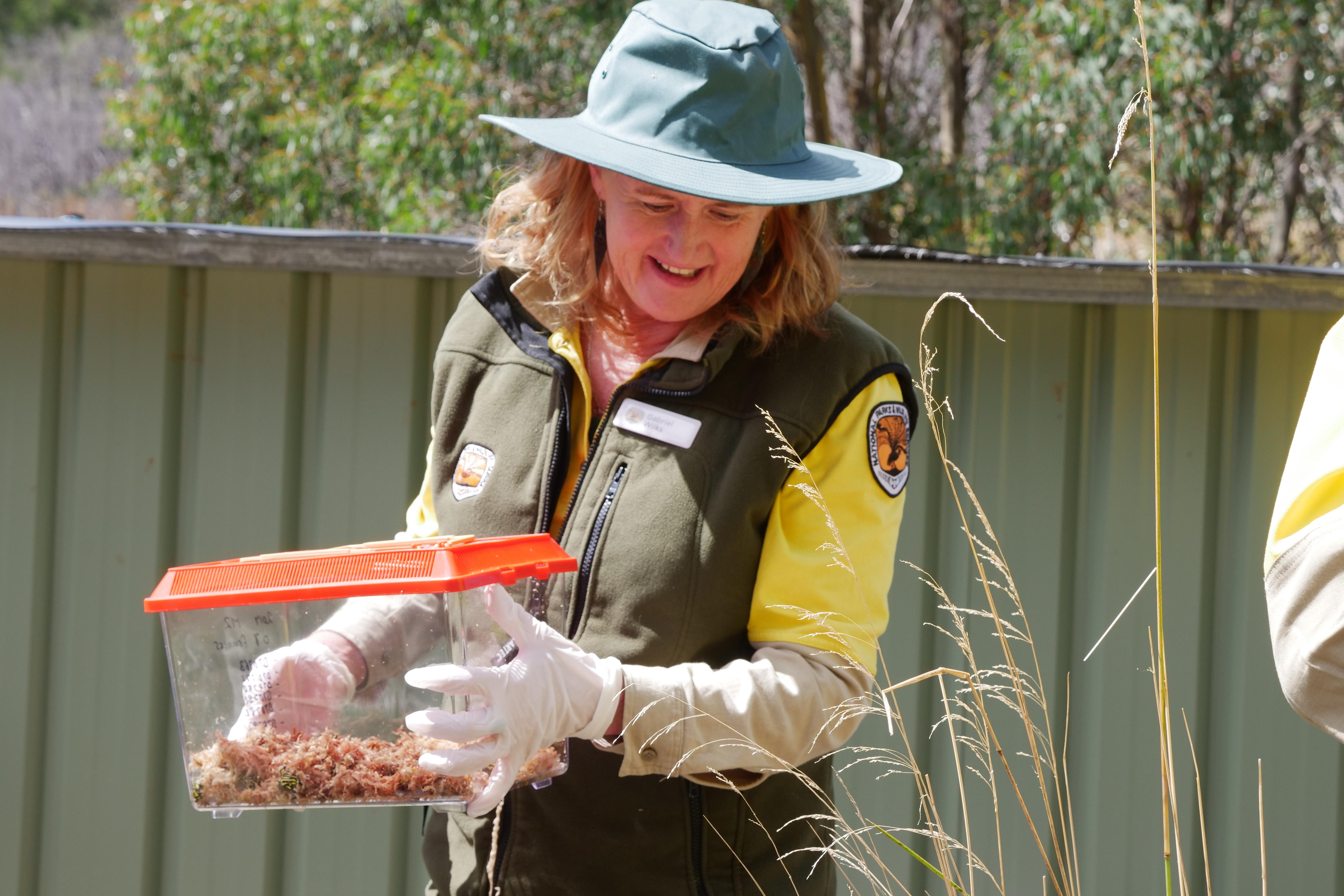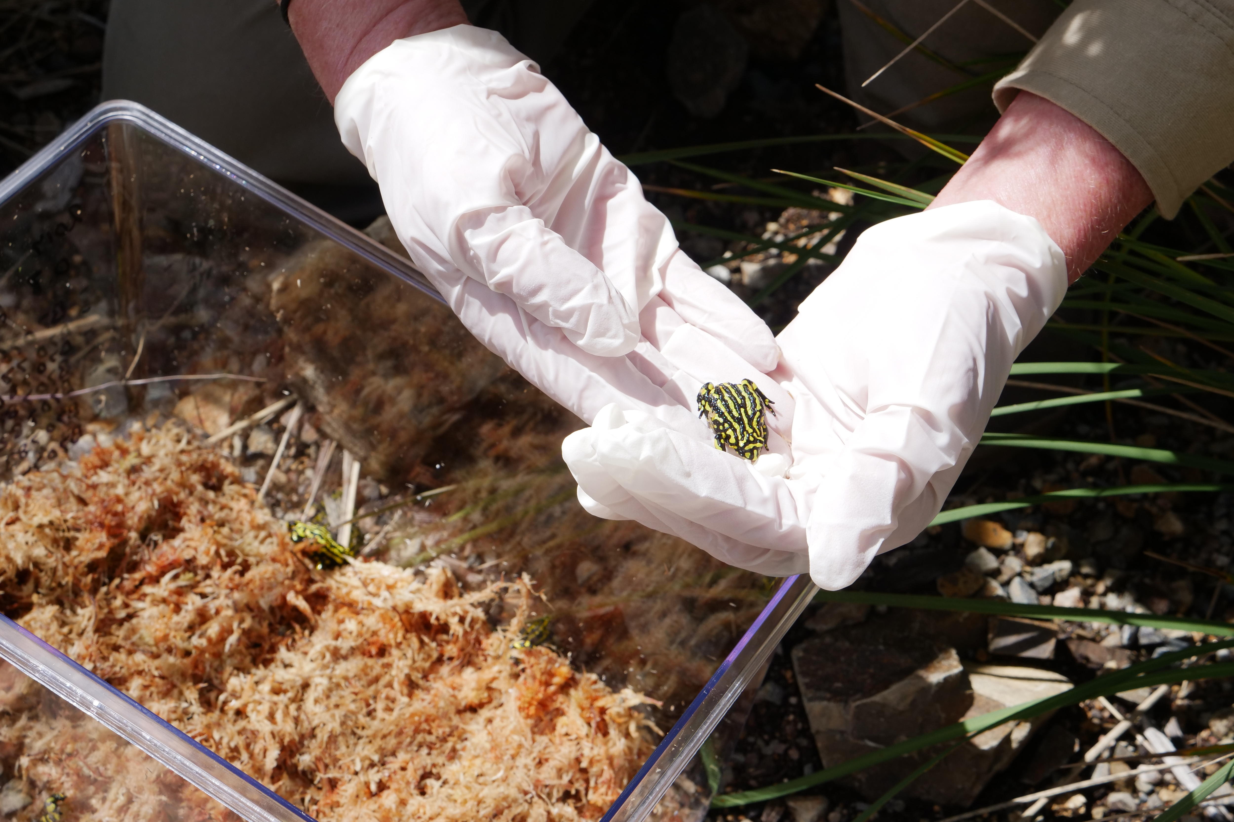 Gabriel Wilks, a senior project officer for rehabilitation, has been part of a collaborative effort to release 100 of the frogs back into the national park.