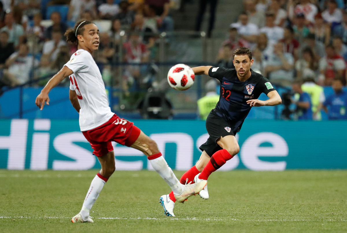 Denmark went ahead after 57 seconds when Mathias Jorgensen scuffed the ball over the line off the foot of Croatia goalkeeper Danijel Subasic but Mario Mandzukic had the Croats back on level terms three minutes later.