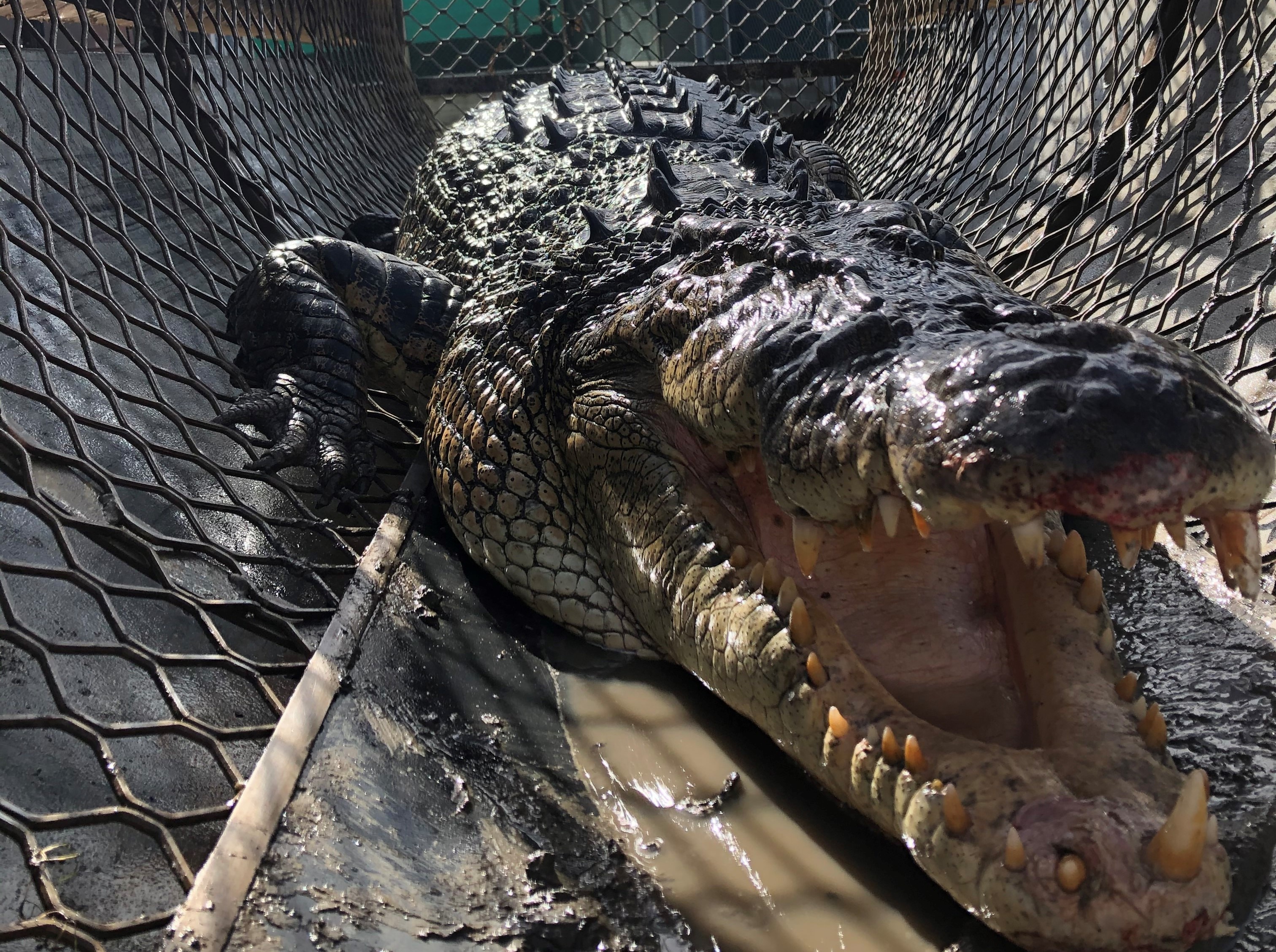The man survived but his dog was eaten, with DES officers later shooting dead a 4.2 metre crocodile.
