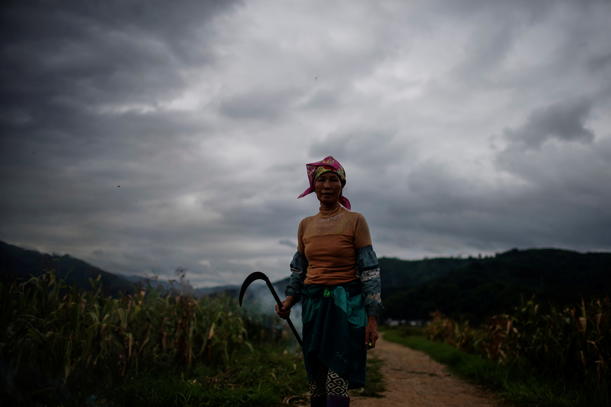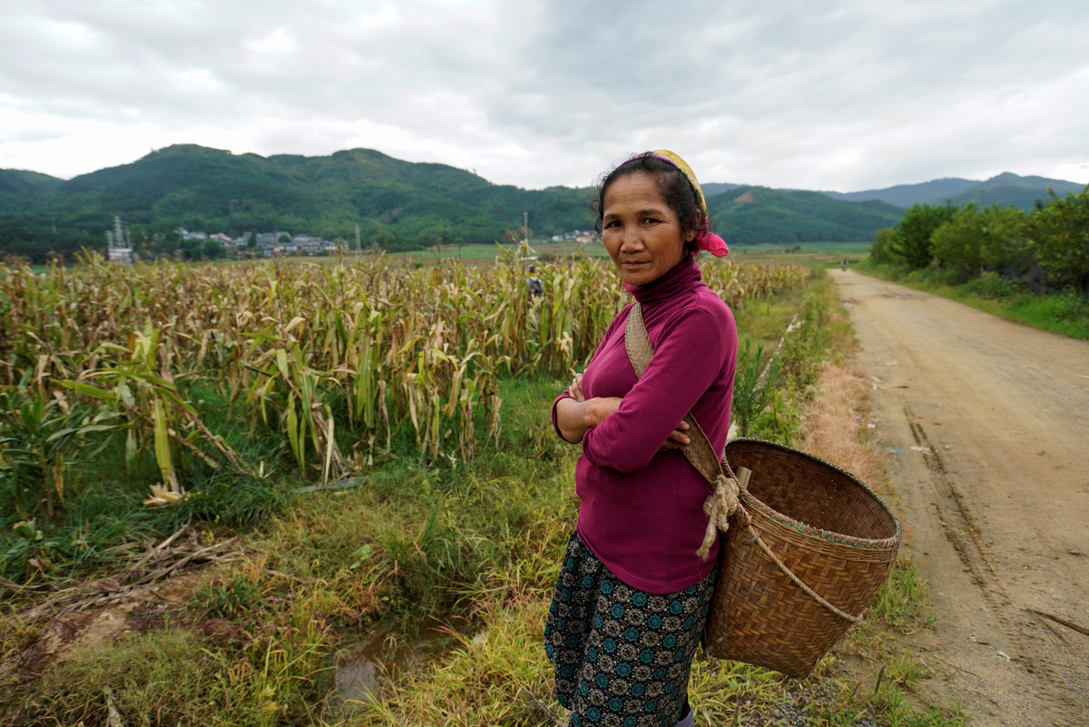 Yu Xianger, another Nuodong farmer, sprayed pesticide on her 2 mu (0.13 hectare) corn field without results and is thinking about finding work in the city.