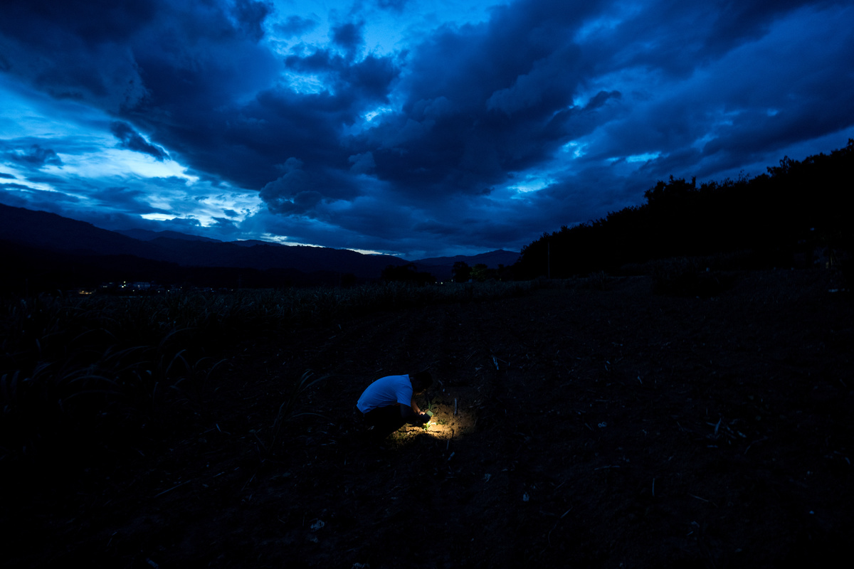 "I don't know what it is," says Yan, a 36-year-old farmer from Menghai county in Yunnan province. "But it is bigger than other ones. I have never seen this worm before."