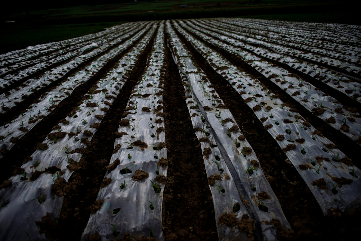 A frustrated Yan applied pesticides fives times to his last crop of sweet corn, but output nearly halved. He has already sprayed his new crop twice, to little effect.