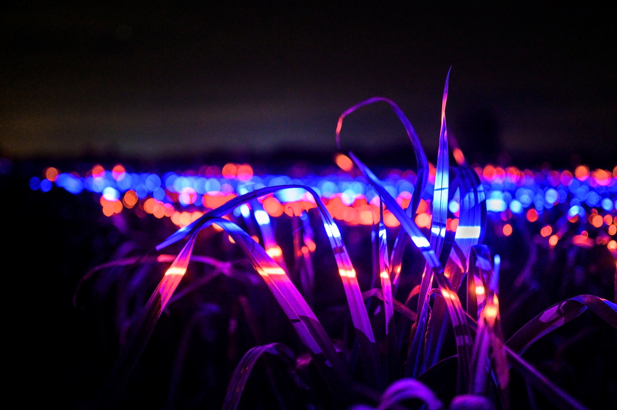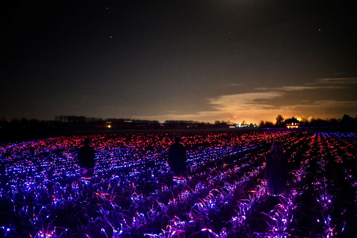 The installation pairing the plants' natural beauty with the futuristic LED show is part of "Grow", artist Daan Roosegaarde's latest project intended as an homage to farmers and to inspire them to experiment with artificial light in outdoor farming.