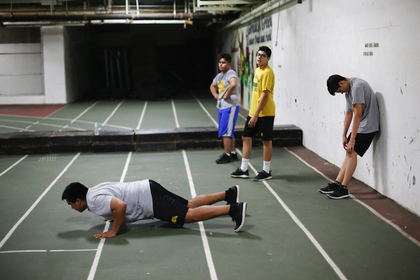 Moisio pointed to a workout called "Death by Burpees," where every 1 minute and 20 seconds, students run a lap and perform an escalating number of burpees _ a movement involving a squat, a pushup and a leap with hands held above the head. The challenge is to keep going as long as you can.