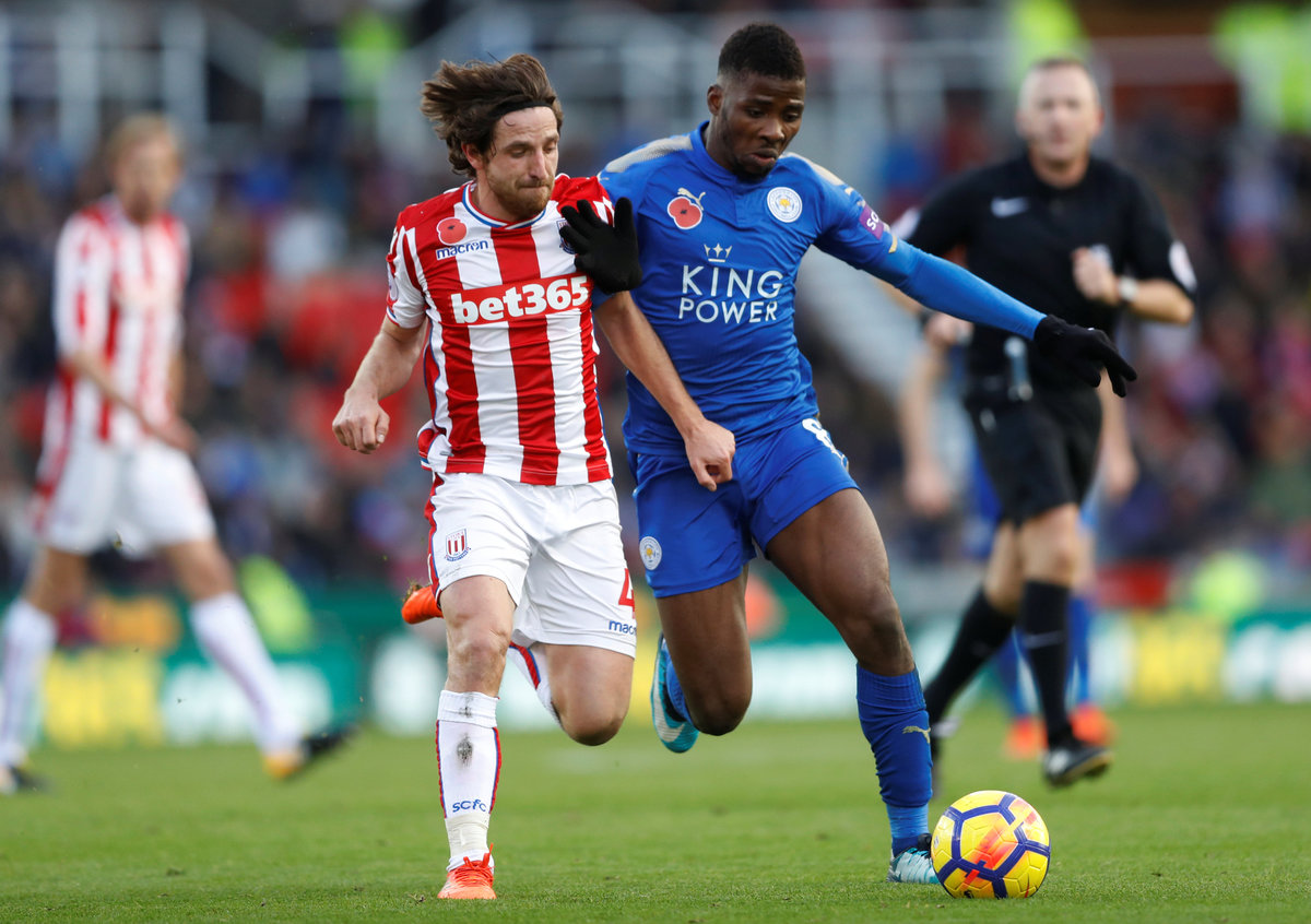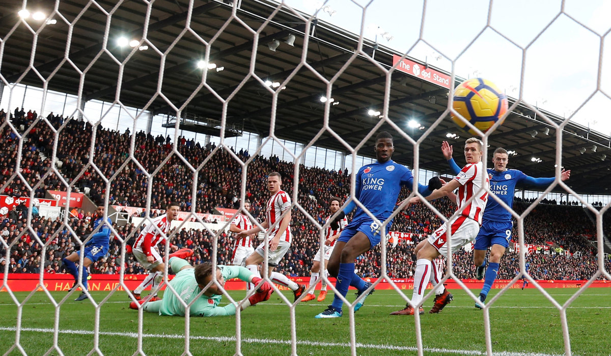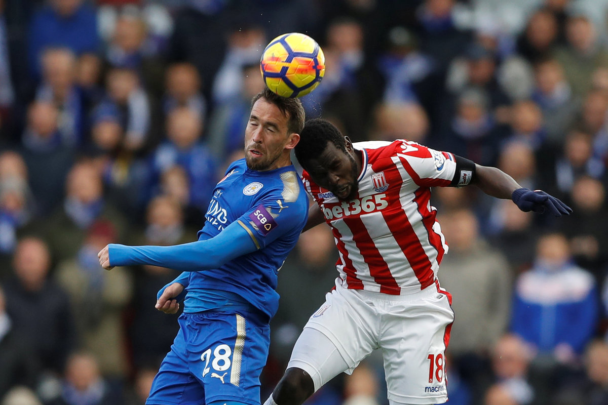 Soccer Football - Premier League - Stoke City vs Leicester City - bet365 Stadium, Stoke-on-Trent, Britain - November 4, 2017 Stoke City's Peter Crouch celebrates scoring their second goal with team mates. REUTERS/Darren Staples Soccer Football - Premier League - Stoke City vs Leicester City - bet365 Stadium, Stoke-on-Trent, Britain - November 4, 2017 Stoke City's Joe Allen in action with Leicester City's Kelechi Iheanacho. Action Images via Reuters/Carl Recine Soccer Football - Premier League - Stoke City vs Leicester City - bet365 Stadium, Stoke-on-Trent, Britain - November 4, 2017 Leicester City's Jamie Vardy shoots at goal. Action Images via Reuters/Carl Recine Soccer Football - Premier League - Stoke City vs Leicester City - bet365 Stadium, Stoke-on-Trent, Britain - November 4, 2017 Stoke City's Peter Crouch celebrates scoring their second goal . Action Images via Reuters/Carl Recine Soccer Football - Premier League - Stoke City vs Leicester City - bet365 Stadium, Stoke-on-Trent, Britain - November 4, 2017 Leicester City's Riyad Mahrez celebrates scoring their second goal with Christian Fuchs and Harry Maguire REUTERS/Darren Staples Soccer Football - Premier League - Stoke City vs Leicester City - bet365 Stadium, Stoke-on-Trent, Britain - November 4, 2017 Leicester City's Christian Fuchs in action with Stoke City's Mame Biram Diouf. Action Images via Reuters/Carl Recine Soccer Football - Premier League - Stoke City vs Leicester City - bet365 Stadium, Stoke-on-Trent, Britain - November 4, 2017 Leicester City's Vicente Iborra receives medical attention. REUTERS/Darren Staples Soccer Football - Premier League - Stoke City vs Leicester City - bet365 Stadium, Stoke-on-Trent, Britain - November 4, 2017 Leicester City's Kasper Schmeichel looks dejected. REUTERS/Darren Staples Soccer Football - Premier League - Stoke City vs Leicester City - bet365 Stadium, Stoke-on-Trent, Britain - November 4, 2017 Leicester City manager Claude Puel after the match. REUTERS/Darren Staples Soccer Football - Premier League - Stoke City vs Leicester City - bet365 Stadium, Stoke-on-Trent, Britain - November 4, 2017 Stoke City manager Mark Hughes Action Images via Reuters/Carl Recine