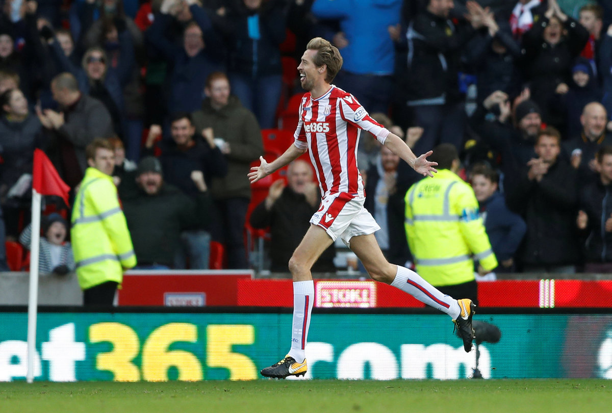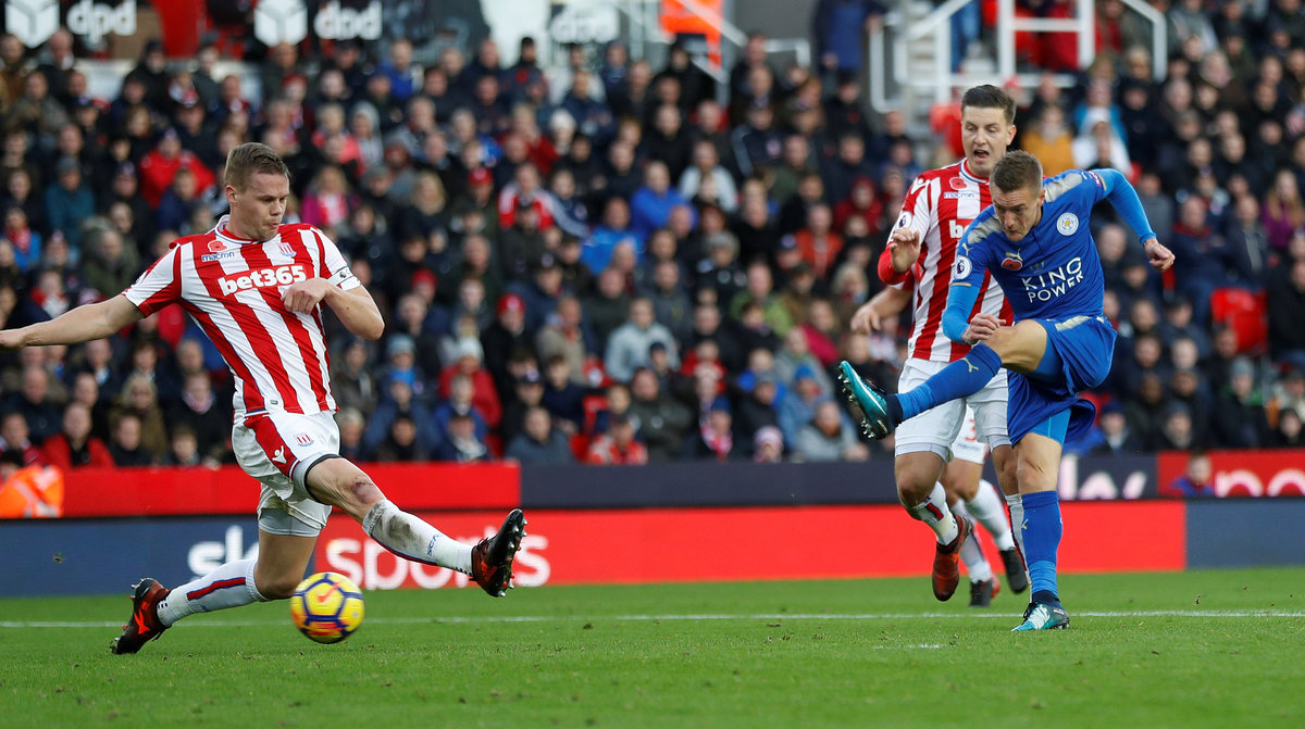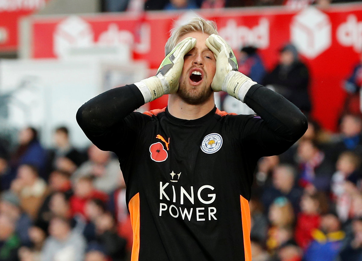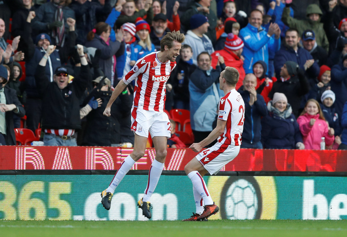 Soccer Football - Premier League - Stoke City vs Leicester City - bet365 Stadium, Stoke-on-Trent, Britain - November 4, 2017 Stoke City's Peter Crouch celebrates scoring their second goal with team mates. REUTERS/Darren Staples Soccer Football - Premier League - Stoke City vs Leicester City - bet365 Stadium, Stoke-on-Trent, Britain - November 4, 2017 Stoke City's Joe Allen in action with Leicester City's Kelechi Iheanacho. Action Images via Reuters/Carl Recine Soccer Football - Premier League - Stoke City vs Leicester City - bet365 Stadium, Stoke-on-Trent, Britain - November 4, 2017 Leicester City's Jamie Vardy shoots at goal. Action Images via Reuters/Carl Recine Soccer Football - Premier League - Stoke City vs Leicester City - bet365 Stadium, Stoke-on-Trent, Britain - November 4, 2017 Stoke City's Peter Crouch celebrates scoring their second goal . Action Images via Reuters/Carl Recine Soccer Football - Premier League - Stoke City vs Leicester City - bet365 Stadium, Stoke-on-Trent, Britain - November 4, 2017 Leicester City's Riyad Mahrez celebrates scoring their second goal with Christian Fuchs and Harry Maguire REUTERS/Darren Staples Soccer Football - Premier League - Stoke City vs Leicester City - bet365 Stadium, Stoke-on-Trent, Britain - November 4, 2017 Leicester City's Christian Fuchs in action with Stoke City's Mame Biram Diouf. Action Images via Reuters/Carl Recine Soccer Football - Premier League - Stoke City vs Leicester City - bet365 Stadium, Stoke-on-Trent, Britain - November 4, 2017 Leicester City's Vicente Iborra receives medical attention. REUTERS/Darren Staples Soccer Football - Premier League - Stoke City vs Leicester City - bet365 Stadium, Stoke-on-Trent, Britain - November 4, 2017 Leicester City's Kasper Schmeichel looks dejected. REUTERS/Darren Staples Soccer Football - Premier League - Stoke City vs Leicester City - bet365 Stadium, Stoke-on-Trent, Britain - November 4, 2017 Leicester City manager Claude Puel after the match. REUTERS/Darren Staples Soccer Football - Premier League - Stoke City vs Leicester City - bet365 Stadium, Stoke-on-Trent, Britain - November 4, 2017 Stoke City manager Mark Hughes Action Images via Reuters/Carl Recine