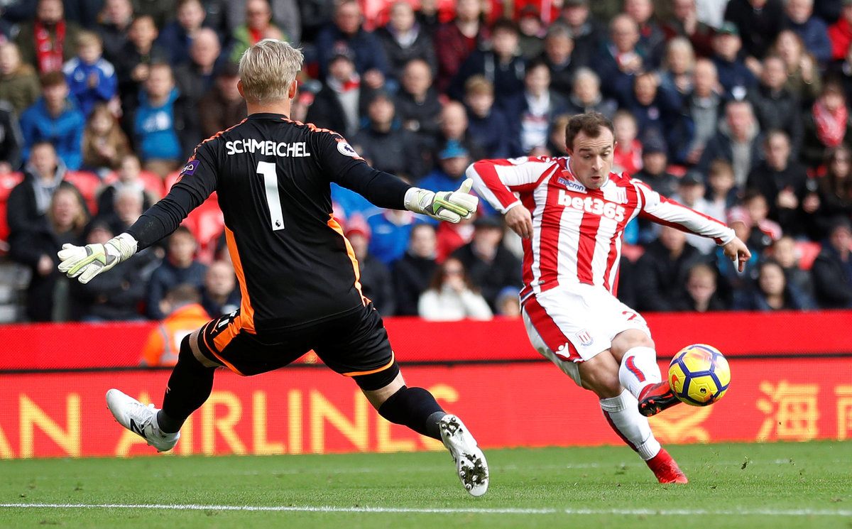 Soccer Football - Premier League - Stoke City vs Leicester City - bet365 Stadium, Stoke-on-Trent, Britain - November 4, 2017 Stoke City's Xherdan Shaqiri scores their first goal. Action Images via Reuters/Carl Recine