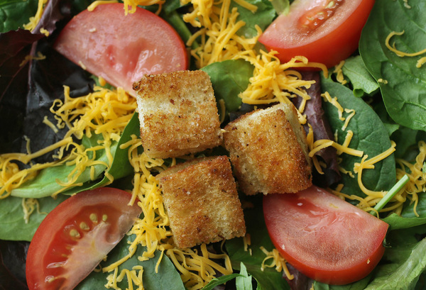 Not that there's anything wrong with salad. I love salad. Especially when it is topped with crunchy, caloric croutons.
