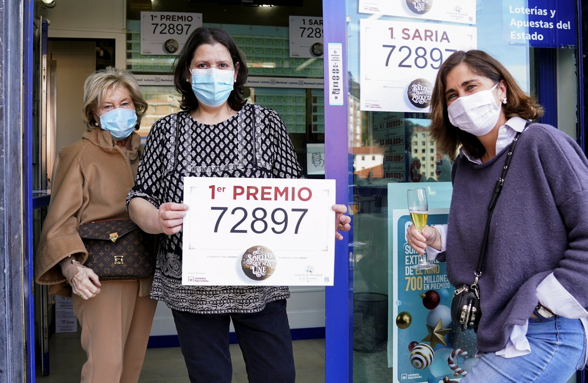 Shares in this year's first prize ticket, 72897, were sold by kiosks in many cities. One of this year's most sought-after numbers - 14320, to mark the country's March 14 lockdown - won nothing.