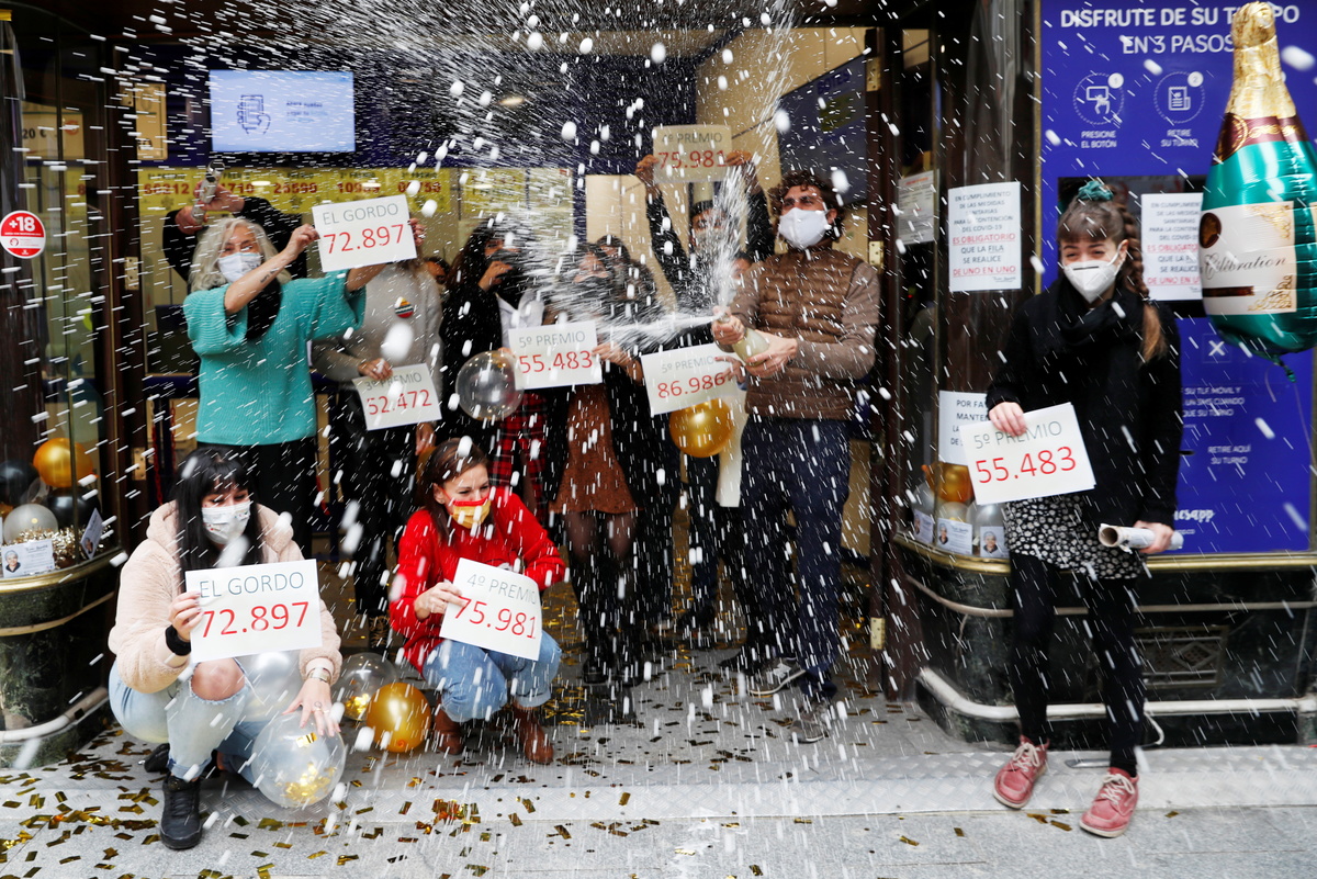 Muted celebrations on Tuesday greeted the draw for Spain's annual El Gordo lottery, with the usual live audience absent from Madrid's Royal Theatre and COVID curbs also thinning the often flamboyantly dressed crowds outside to a handful of onlookers.
