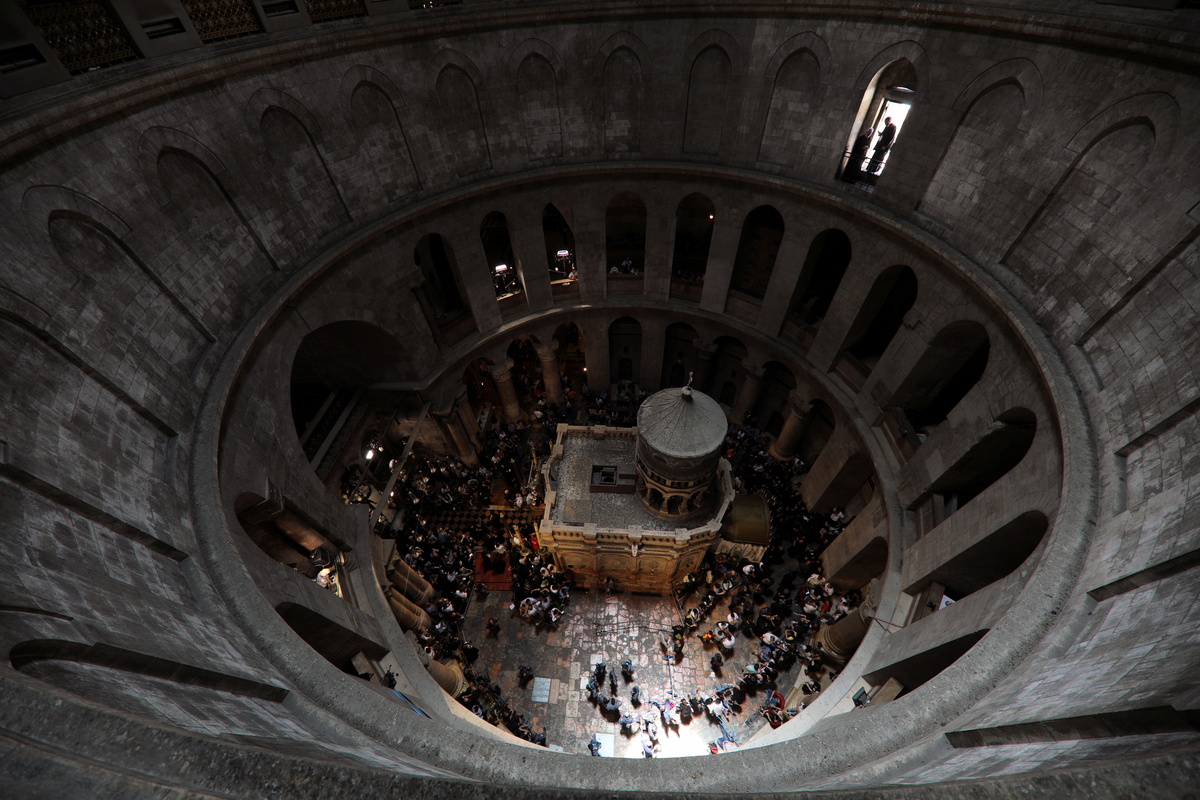 Sunbeams that pierce through a skylight in the church's dome are believed by worshippers to ignite a flame deep inside the crypt, a mysterious act considered a Holy Saturday miracle each year before Orthodox Easter Sunday.